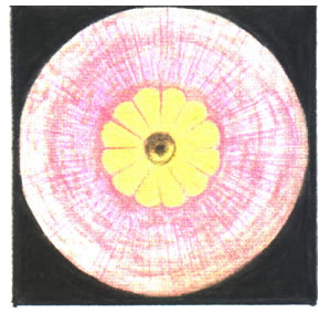 Cuando el Iniciado está activamente en este estado místico, el aura de esta rueda se levanta, se agranda y se extiende maravillosamente. Pero cuando él está en estado pasivo, se invierte sobre el mismo y esconde todo el ser con su cáscara, como la nuez guarda el fruto en su cascarón.
